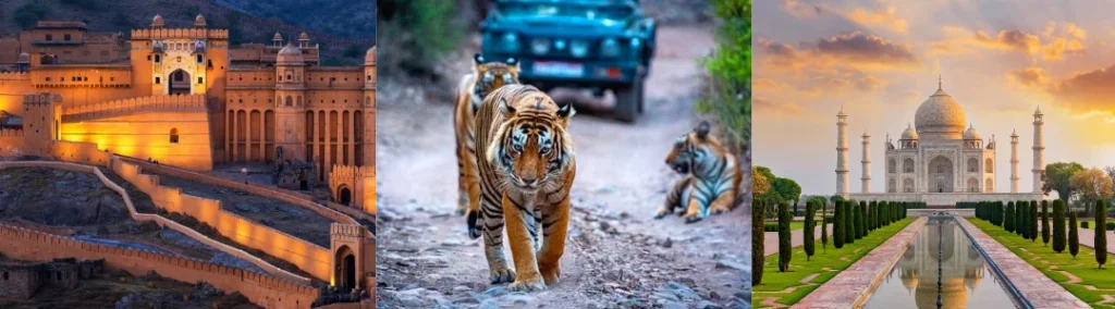 En Agra, podrás admirar la majestuosidad del Taj Mahal, una de las Siete Maravillas del Mundo, y en Jaipur, quedarás maravillado con los palacios y fortalezas de la dinastía Rajput, como el Fuerte Amber y el Palacio de los Vientos. Para experiencias únicas, ofrecemos el Tour del Triángulo Dorado con Amritsar, donde podrás visitar el Templo Dorado; el tour recorrido por el Triángulo Dorado con Jodhpur y Jaisalmer, perfecto para explorar la magia del desierto; o el tour Tour del Triángulo Dorado con Ranthambore, ideal para amantes de la naturaleza y la vida silvestre. También puedes optar por el Tour del Triángulo Dorado con Varanasi, donde experimentarás la espiritualidad única de esta ciudad sagrada.